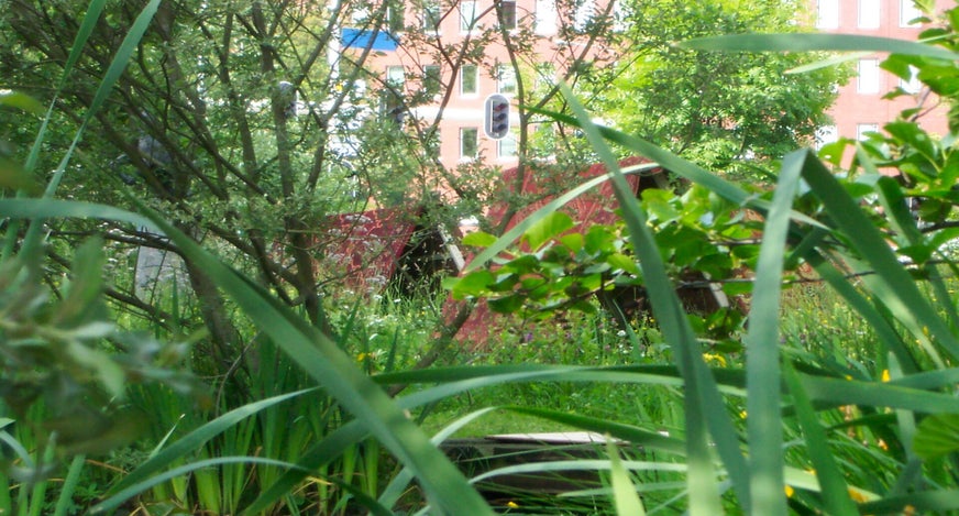 appingedam 2002, project in het voorbijgaan terrein in verval; twee monitoren tonen