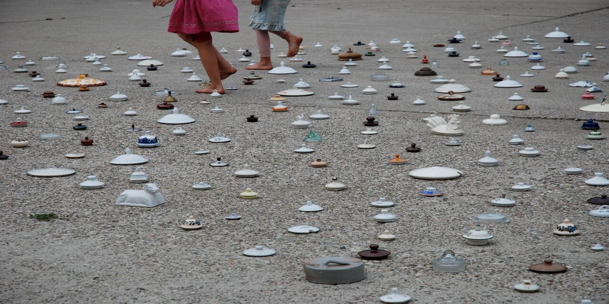 kloosterburen 2011, een hart van wel 350 deksels ligt op het ruige erf