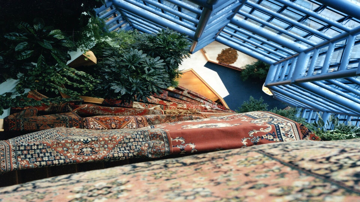 groningen 2005, 180 oosterse tapijten hangen in de hal van het organisch